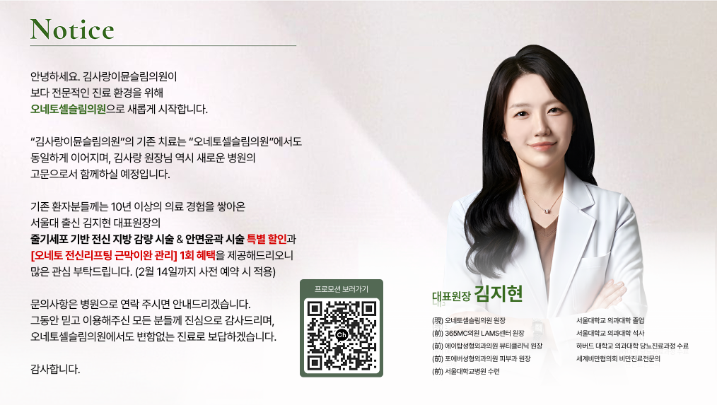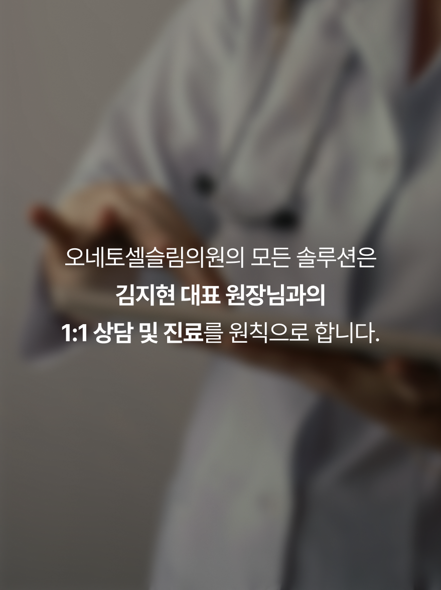 오네토셀슬림의원|의원대표원장 : 김지현|사업자번호 : 241-46-01175|대표번호 : 02-6403-1871