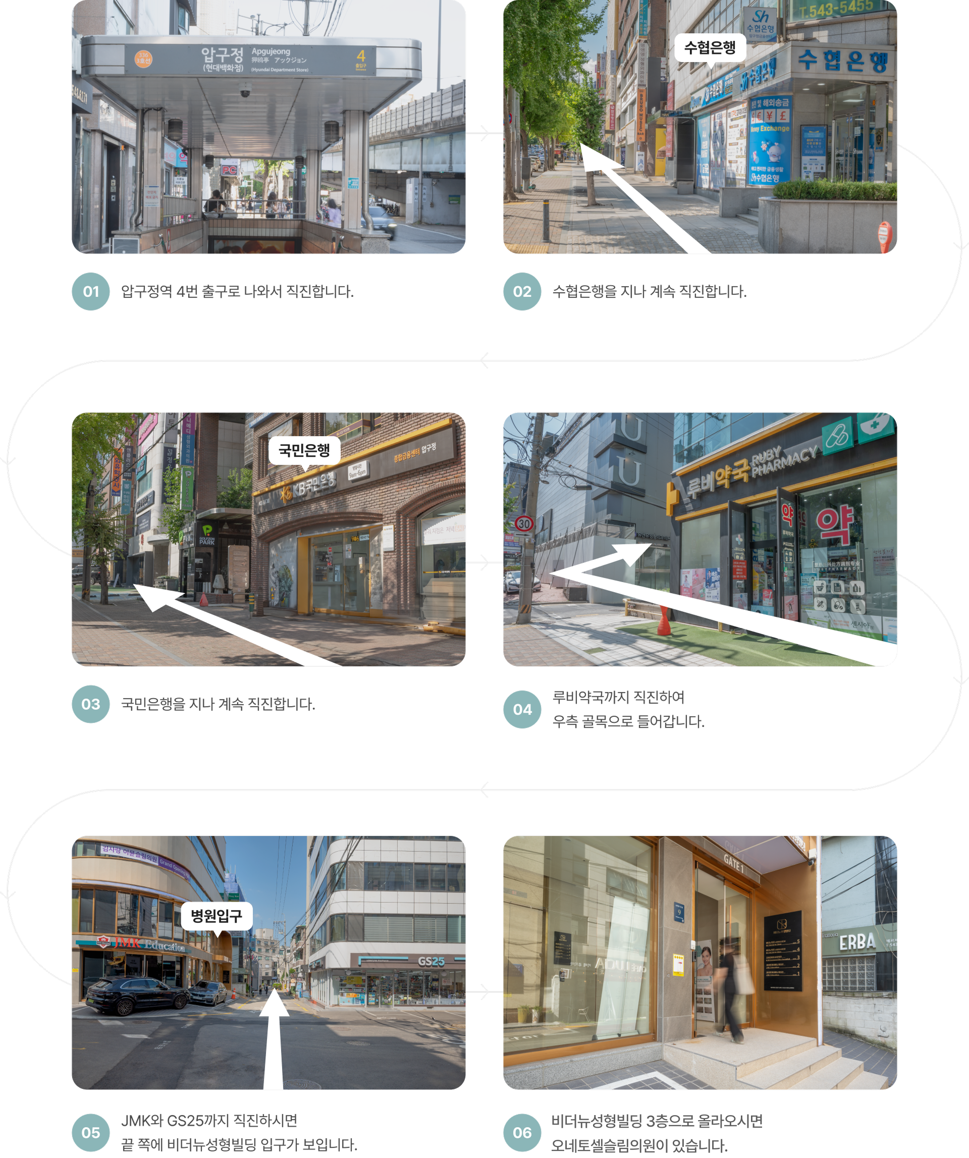 3호선 압구정역 - 4번출구에서 도보 6분 비더뉴성형빌딩 3층